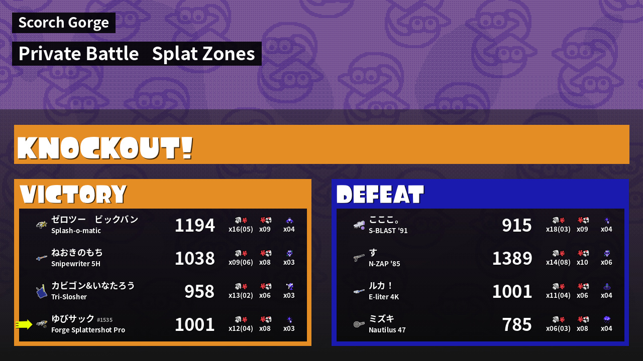 Results of ゆびサック's Battle