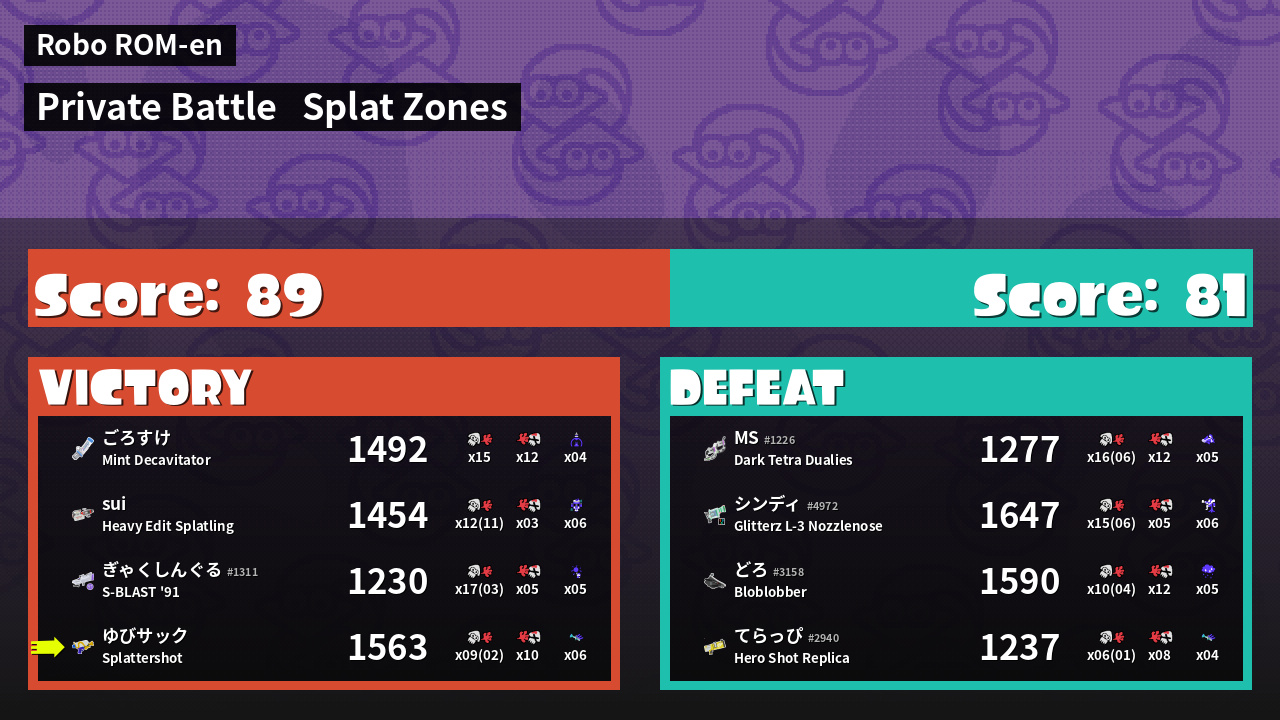 | Mode | Splat Zones - Private Battle |
