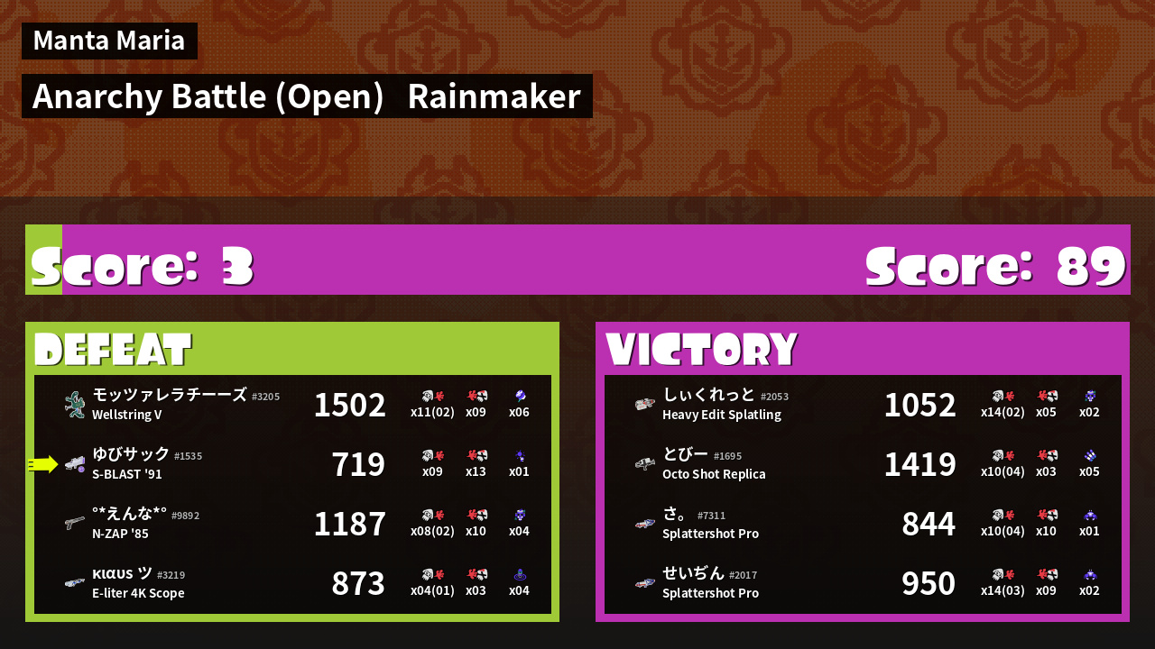 | Mode | Rainmaker - Anarchy Battle (Open) |