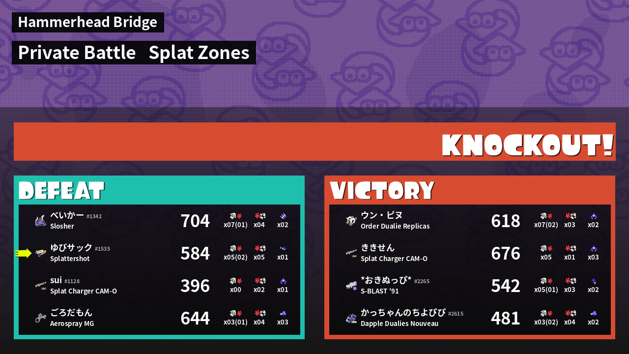 Results of ゆびサック's Battle