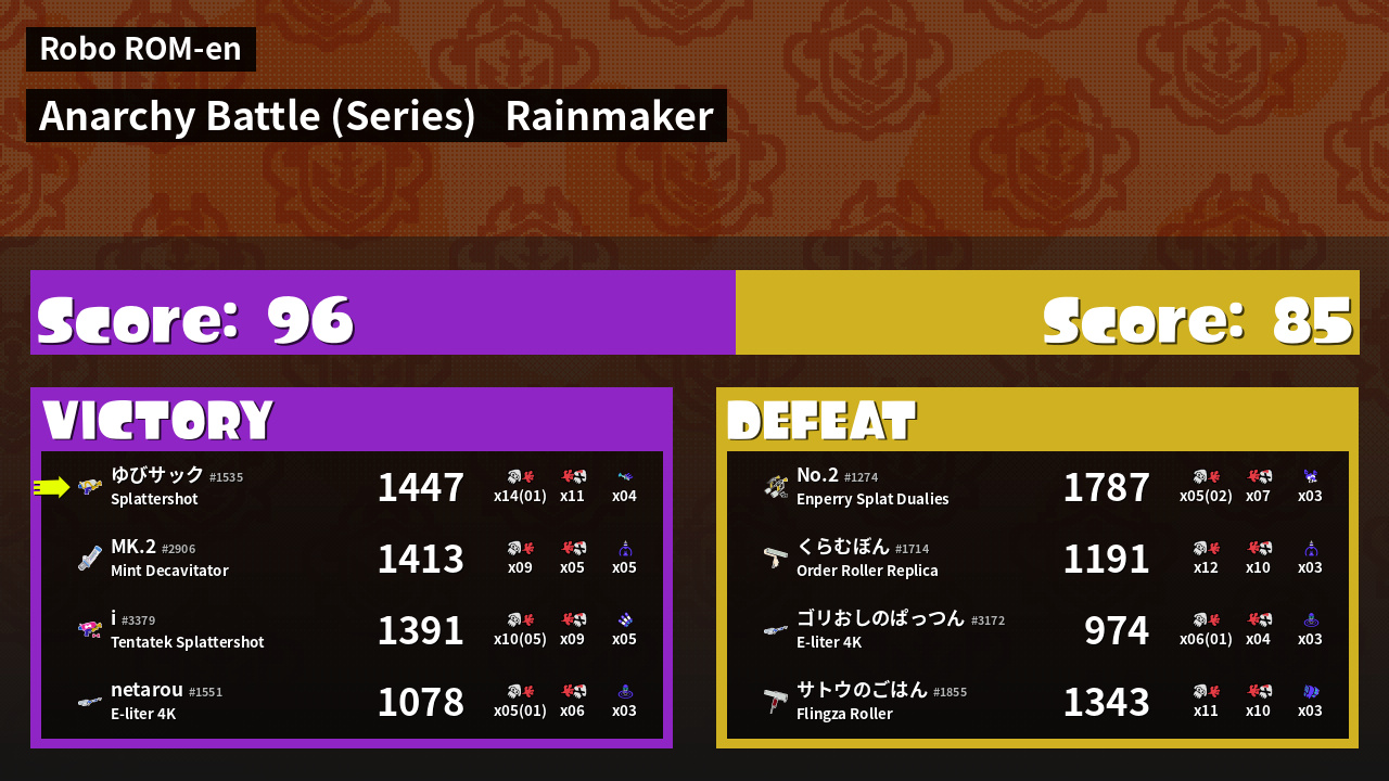 | Mode | Rainmaker - Anarchy Battle (Series) |