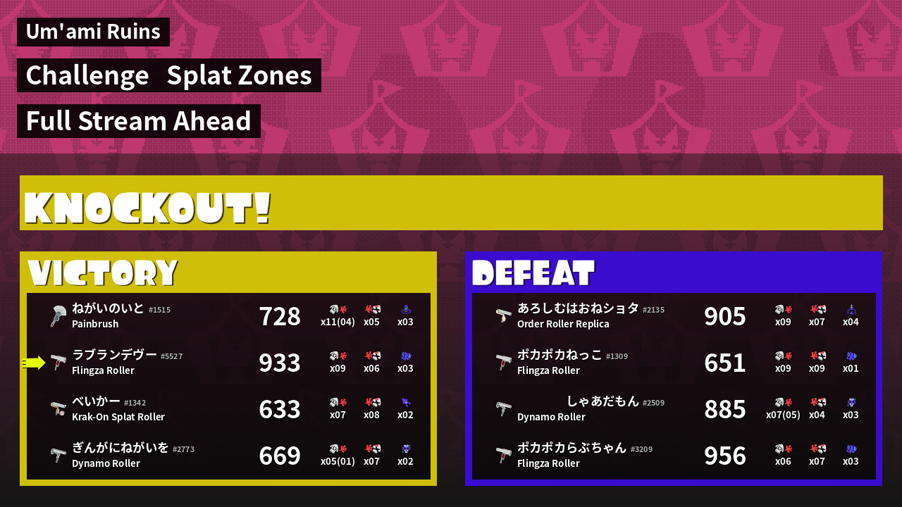 | Weapon | Flingza Roller ( Ink Mine / Tenta Missiles) | ||