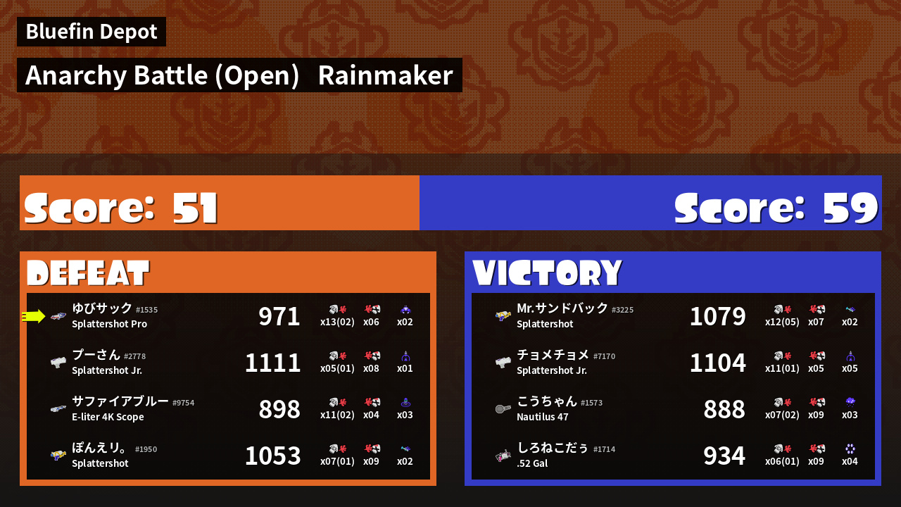 | Mode | Rainmaker - Anarchy Battle (Open) |