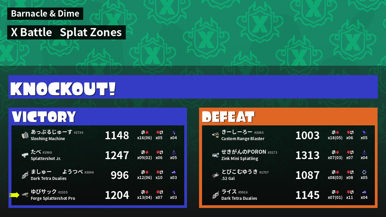 | Mode | Splat Zones - X Battle |