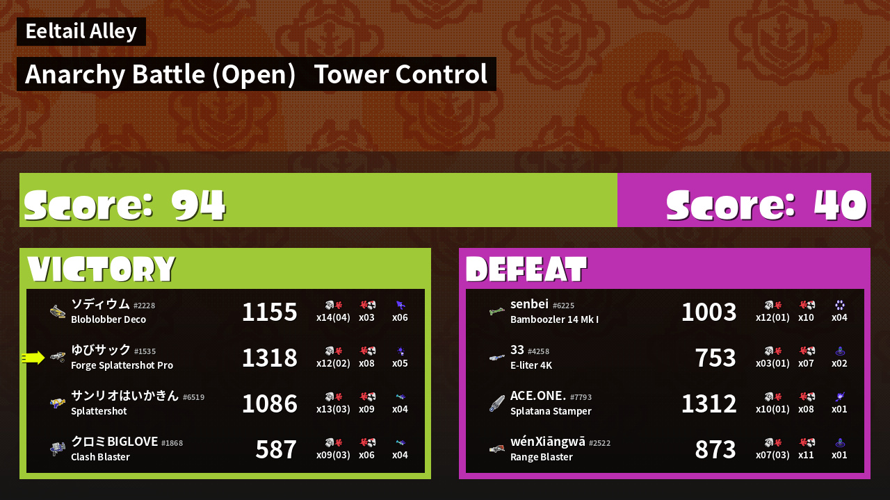 | Mode | Tower Control - Anarchy Battle (Open) |