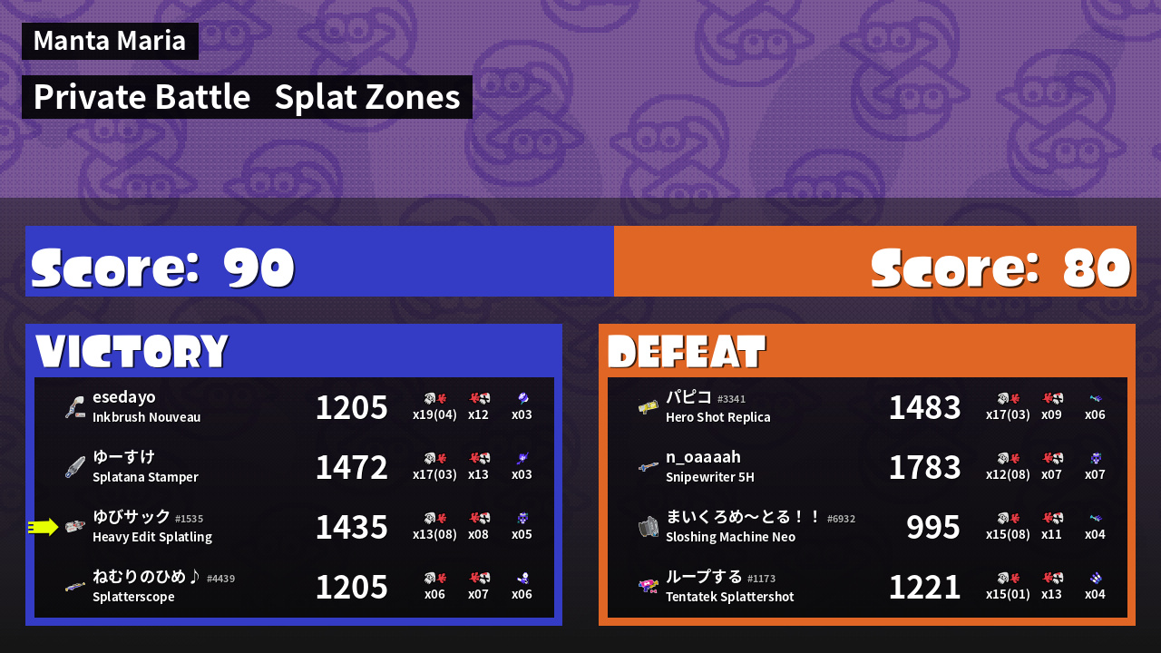 | Medals | #1 Super Jump Spot #1 Splat Assister #1 Tacticooler User | ||