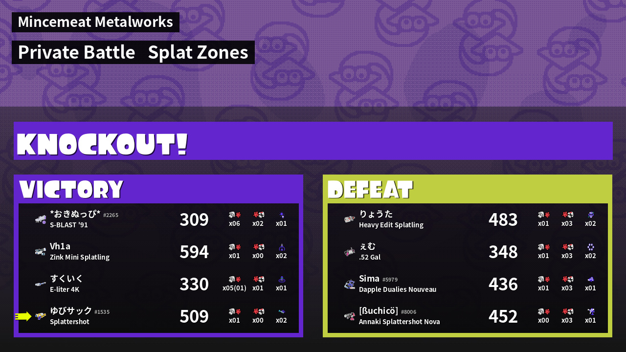 | Mode | Splat Zones - Private Battle |