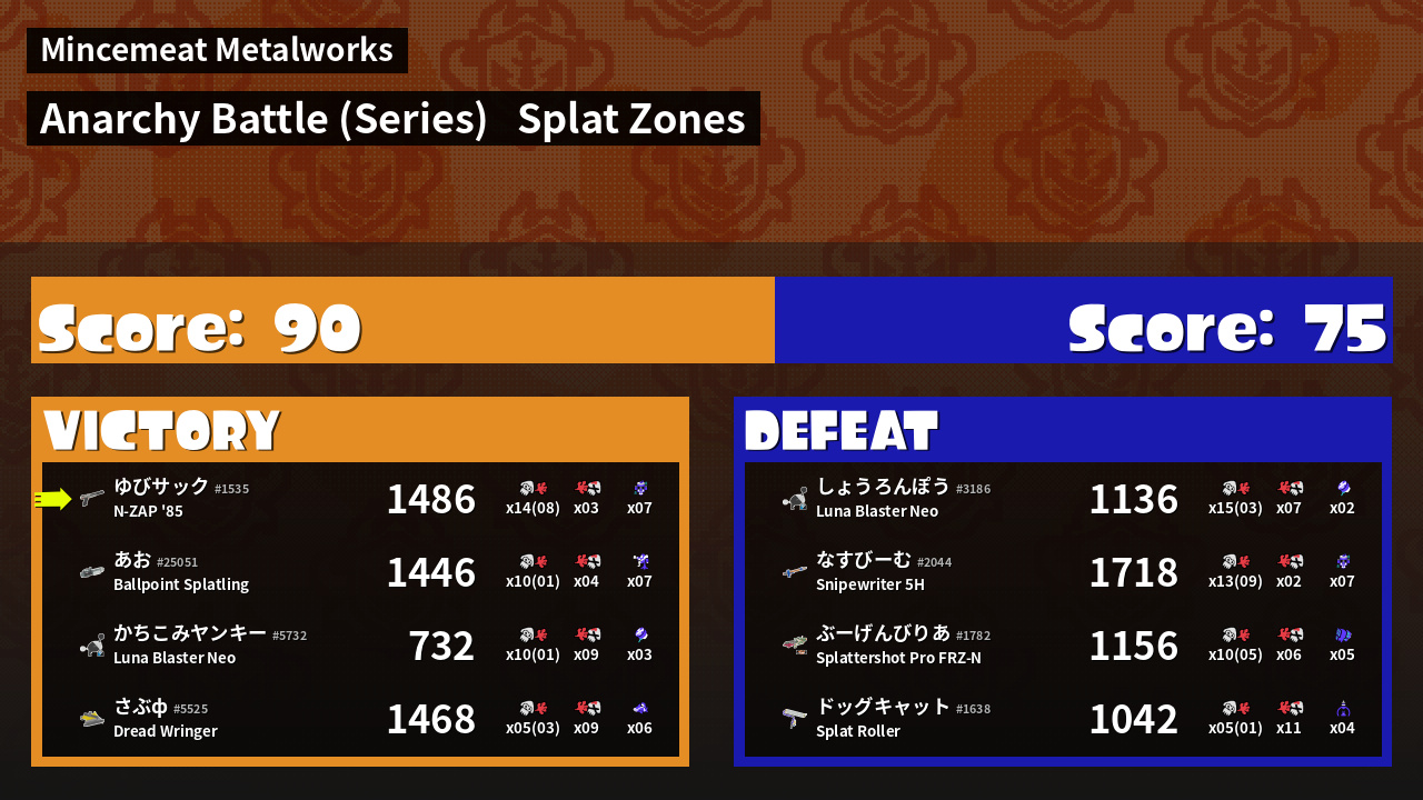 | Mode | Splat Zones - Anarchy Battle (Series) |