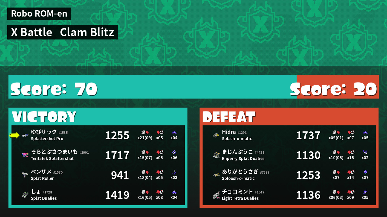 | Mode | Clam Blitz - X Battle |