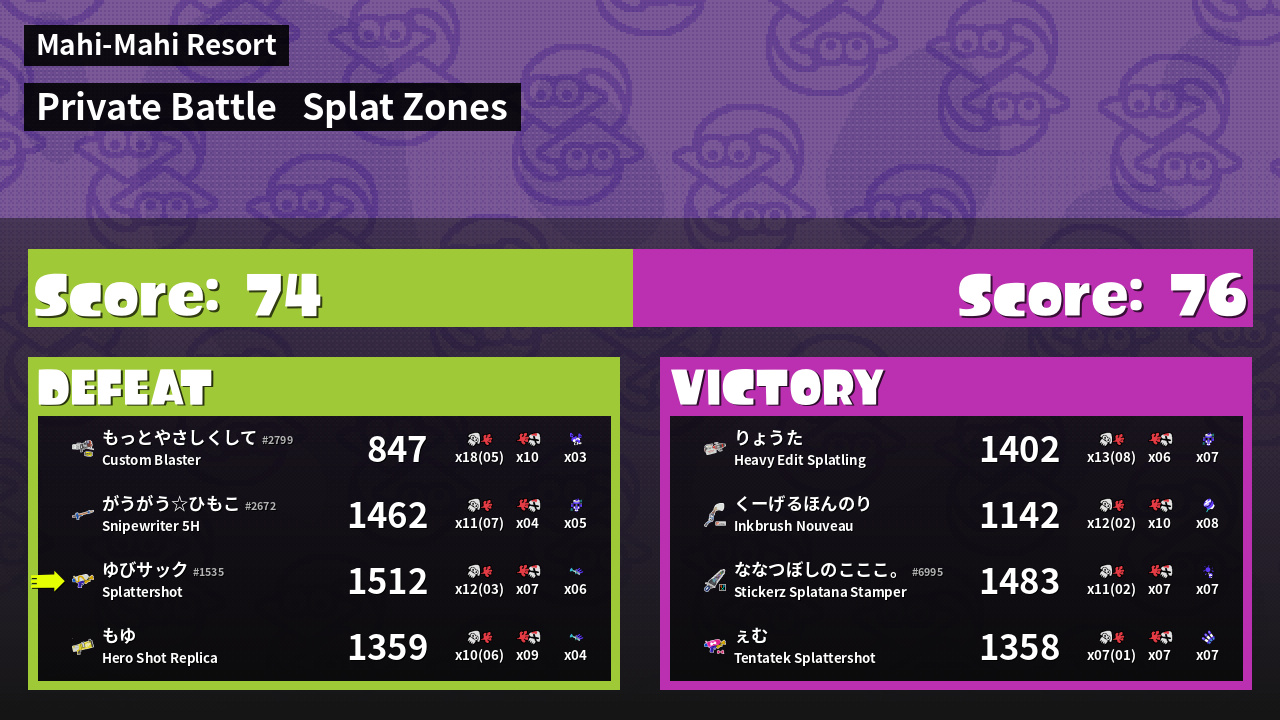 | Medals | #1 Splat Zone Guard #1 Turf Inker #1 Damage Taker |