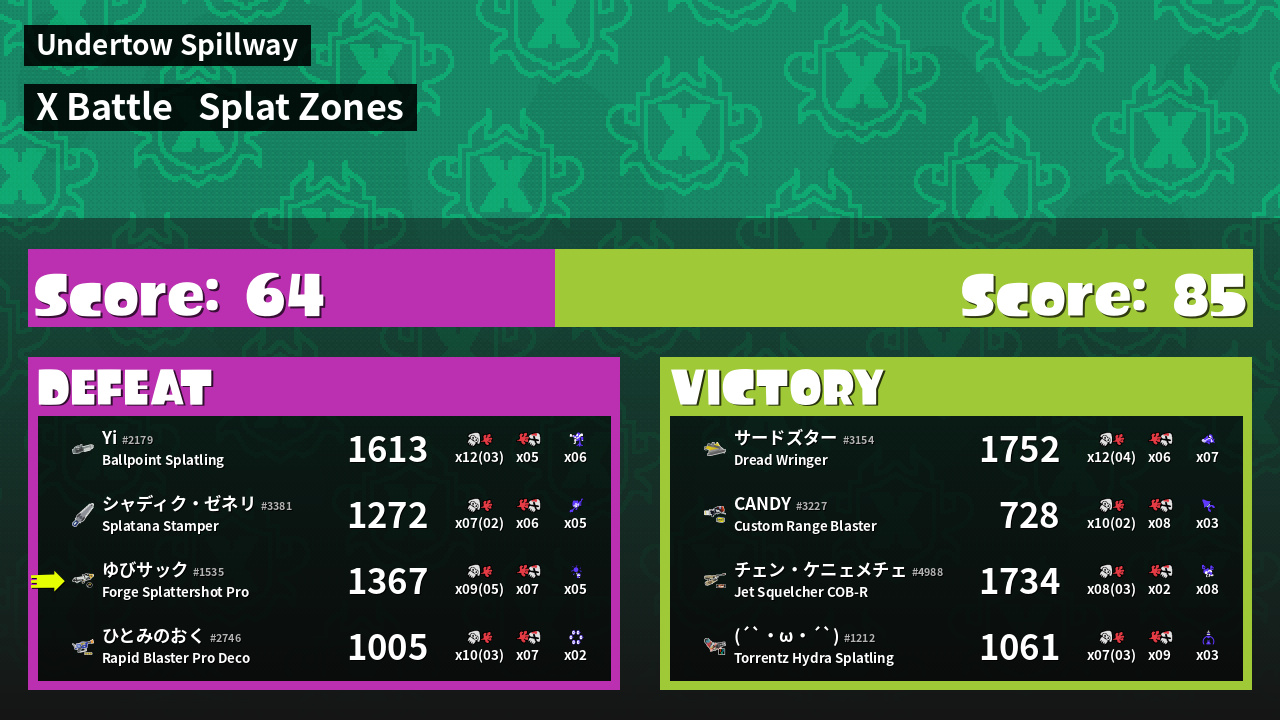 | Mode | Splat Zones - X Battle |