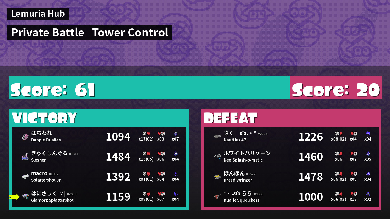 | Weapon | Glamorz Splattershot ( Burst Bomb / Kraken Royale) |