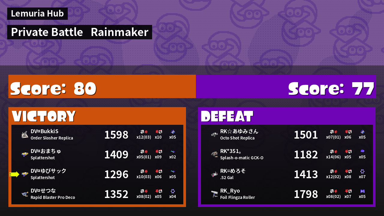 Results of ゆびサック's Battle