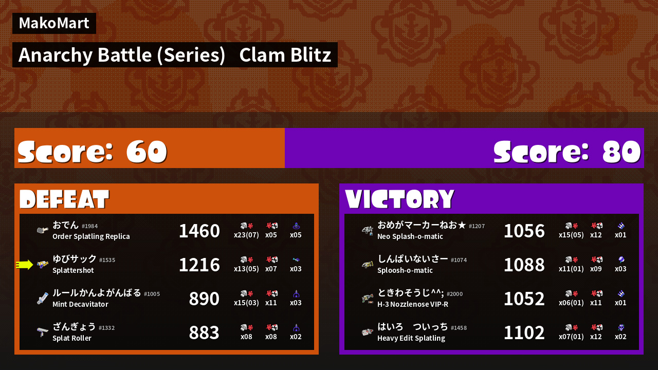| Mode | Clam Blitz - Anarchy Battle (Series) |