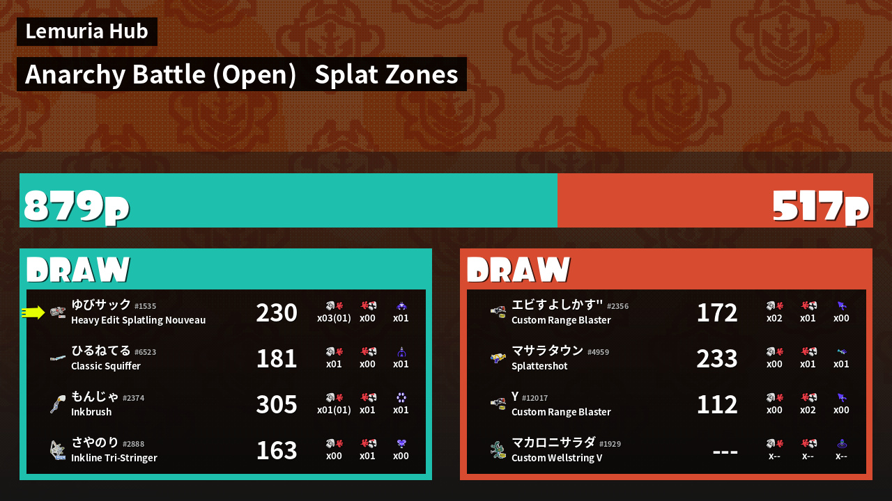 | Mode | Splat Zones - Anarchy Battle (Open) | ||