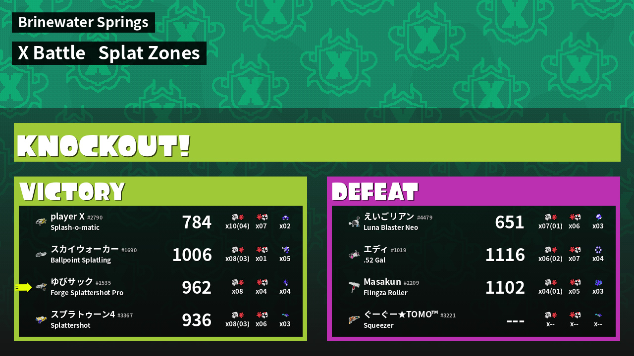 | Mode | Splat Zones - X Battle |
