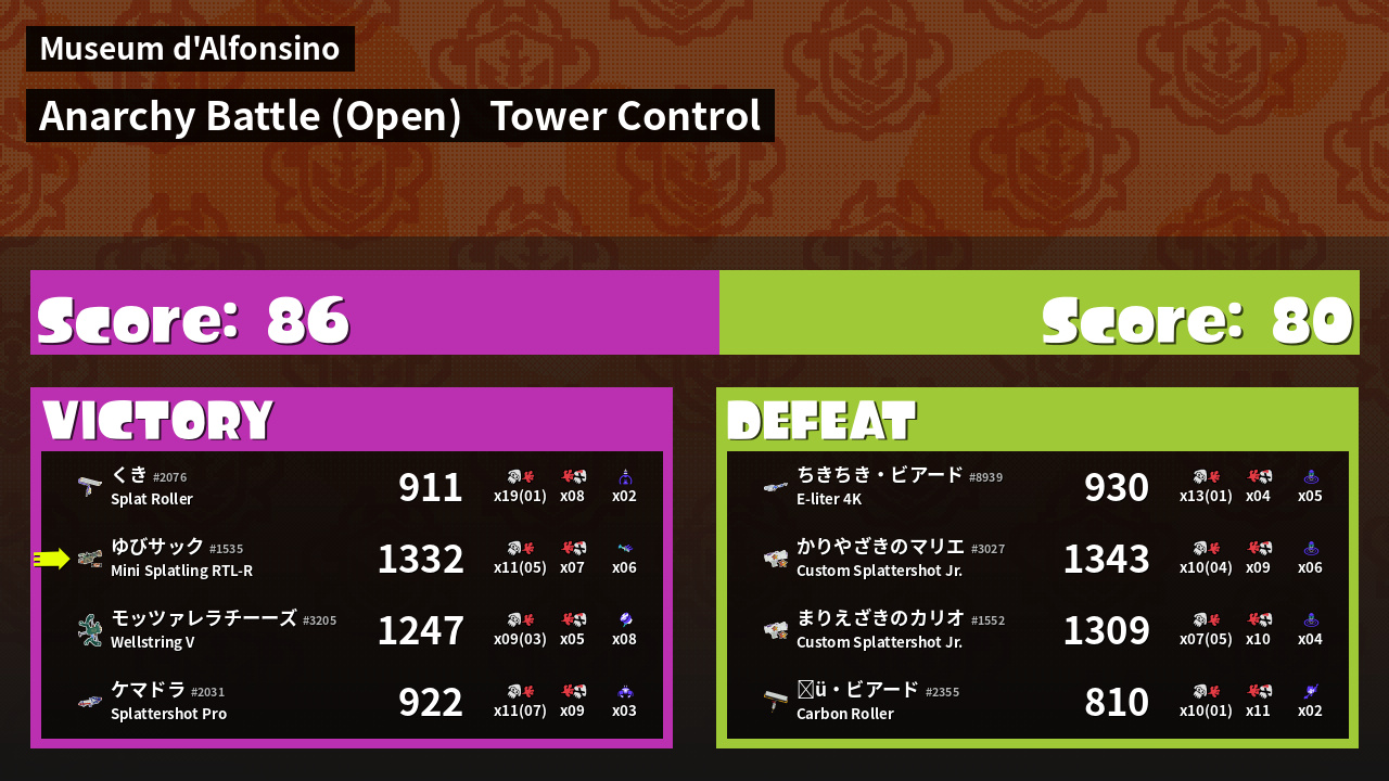 Results of ゆびサック's Battle