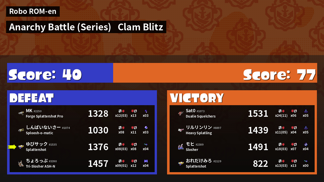 | Mode | Clam Blitz - Anarchy Battle (Series) |