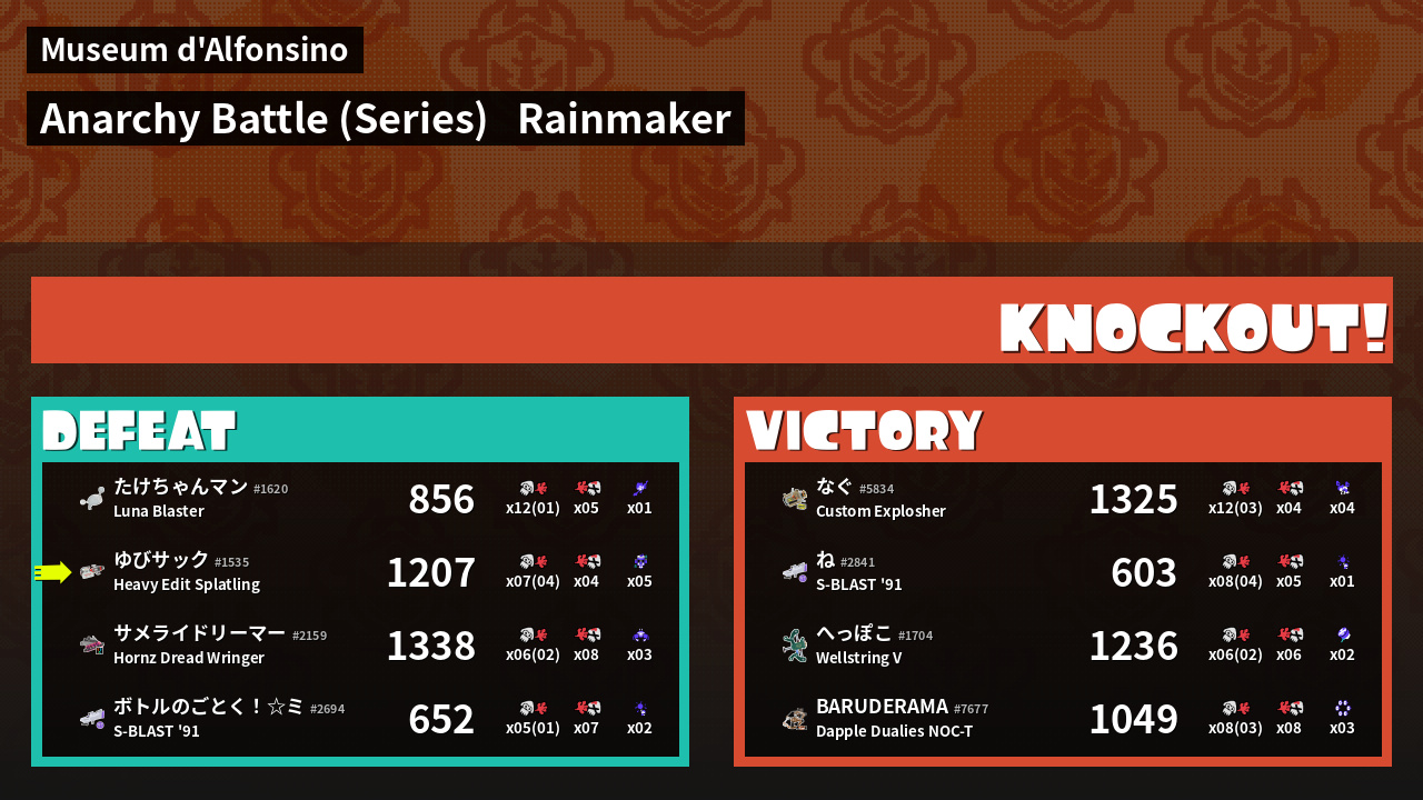 Results of ゆびサック's Battle