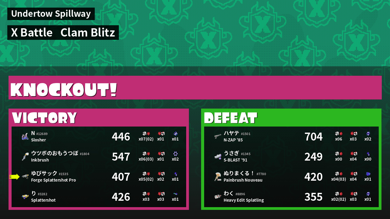 | Weapon | Forge Splattershot Pro ( Suction Bomb / Booyah Bomb) |