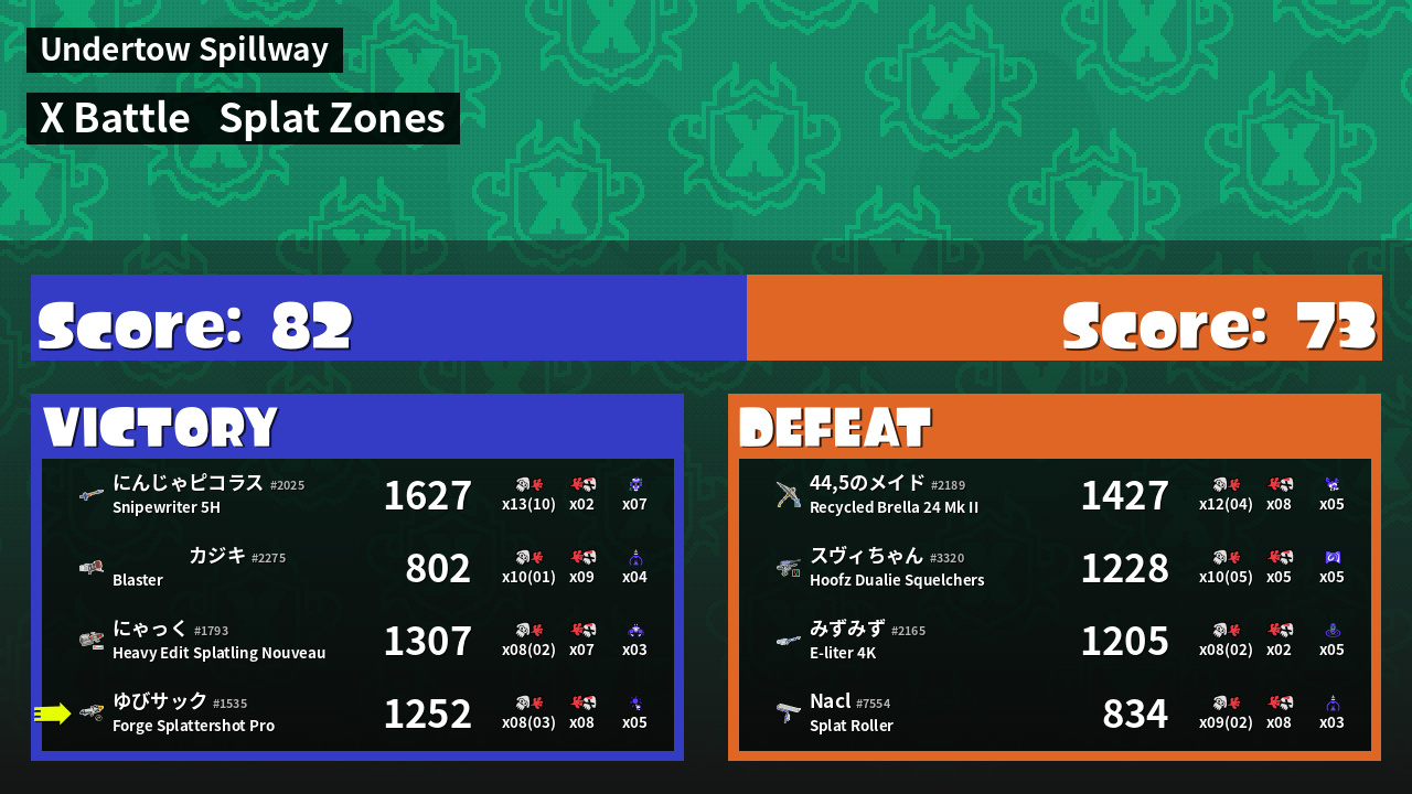 | Weapon | Forge Splattershot Pro ( Suction Bomb / Booyah Bomb) |