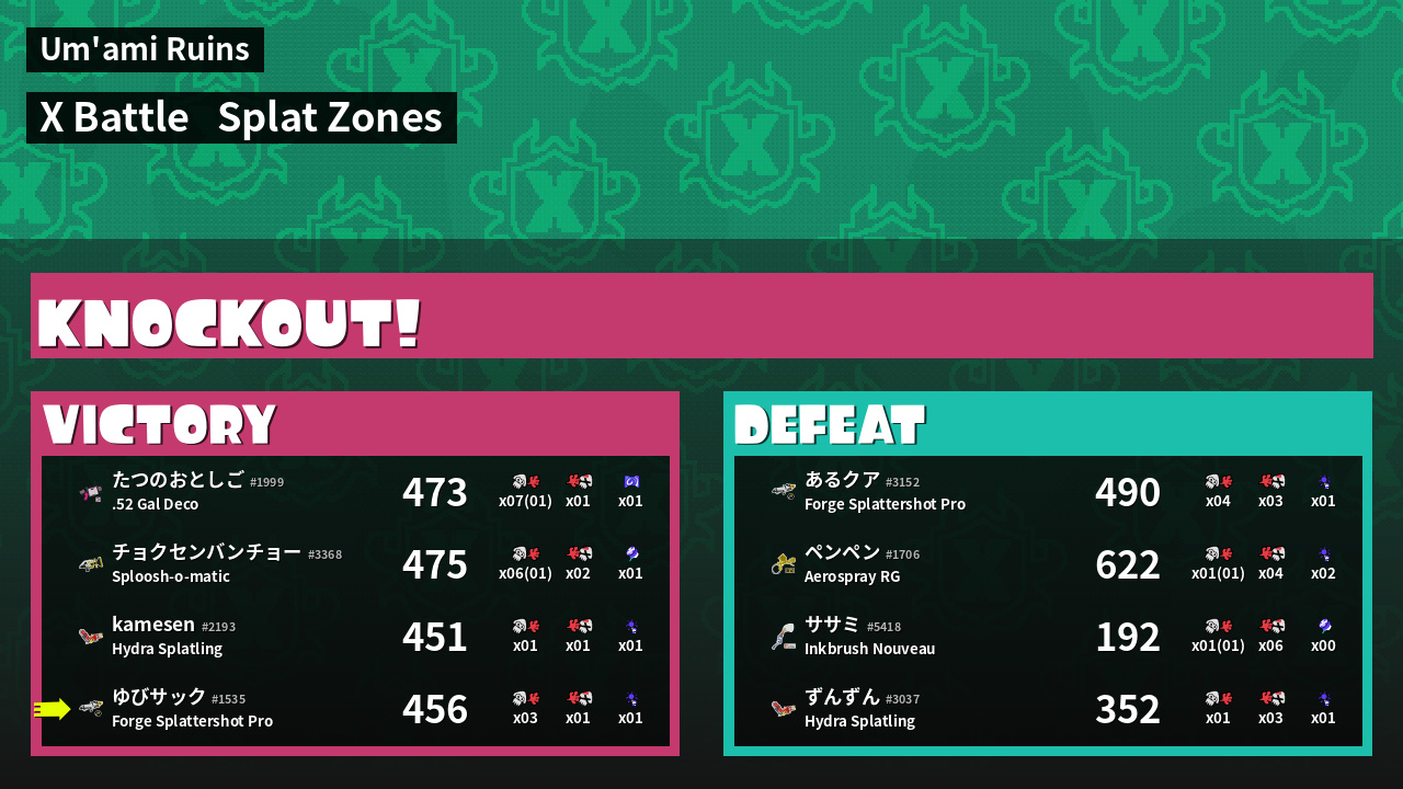 | Weapon | Forge Splattershot Pro ( Suction Bomb / Booyah Bomb) |