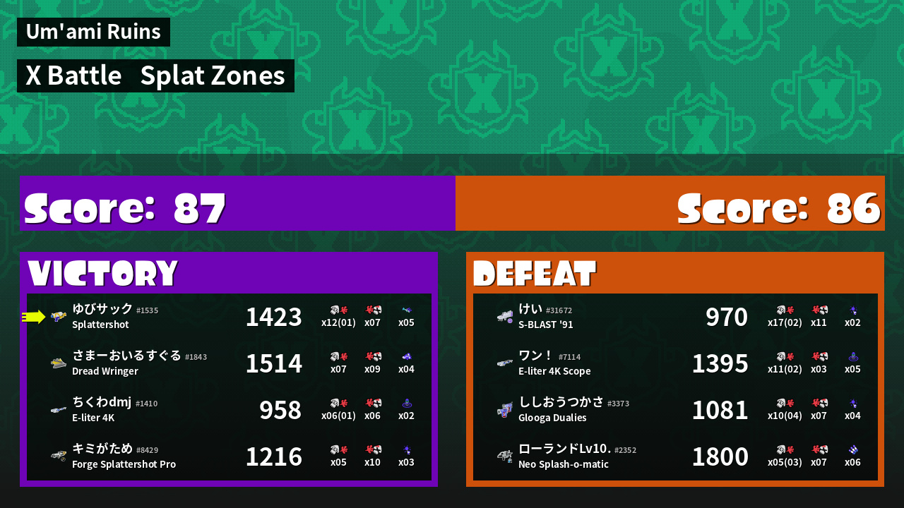 Results of ゆびサック's Battle