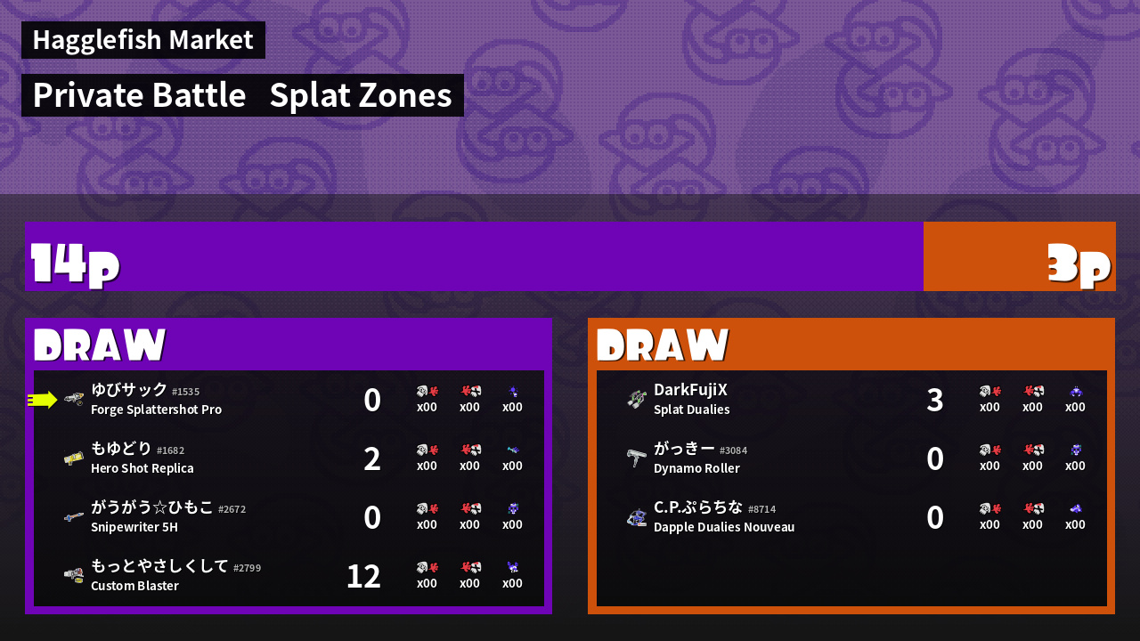 | Weapon | Forge Splattershot Pro ( Suction Bomb / Booyah Bomb) |