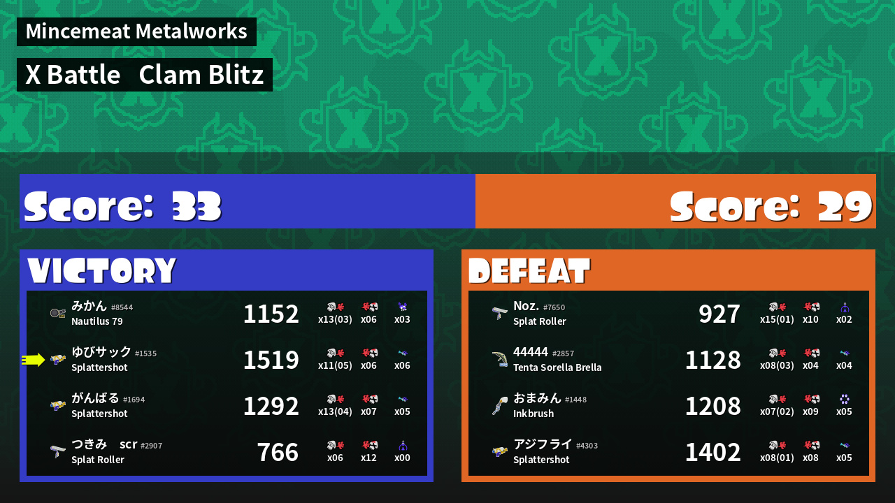 Results of ゆびサック's Battle