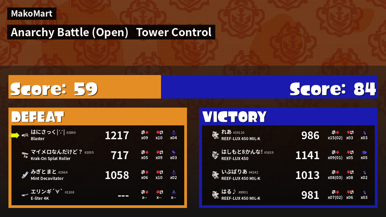 | Mode | Tower Control - Anarchy Battle (Open) |