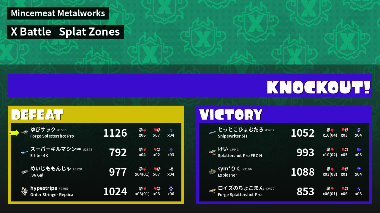 | Mode | Splat Zones - X Battle |
