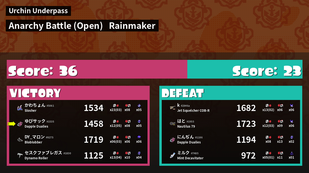 | Mode | Rainmaker - Anarchy Battle (Open) |