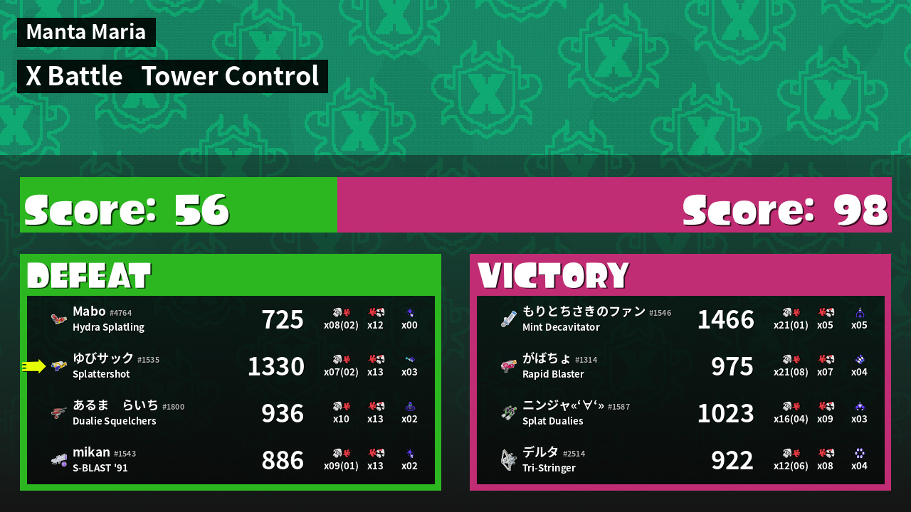 | Mode | Tower Control - X Battle | ||