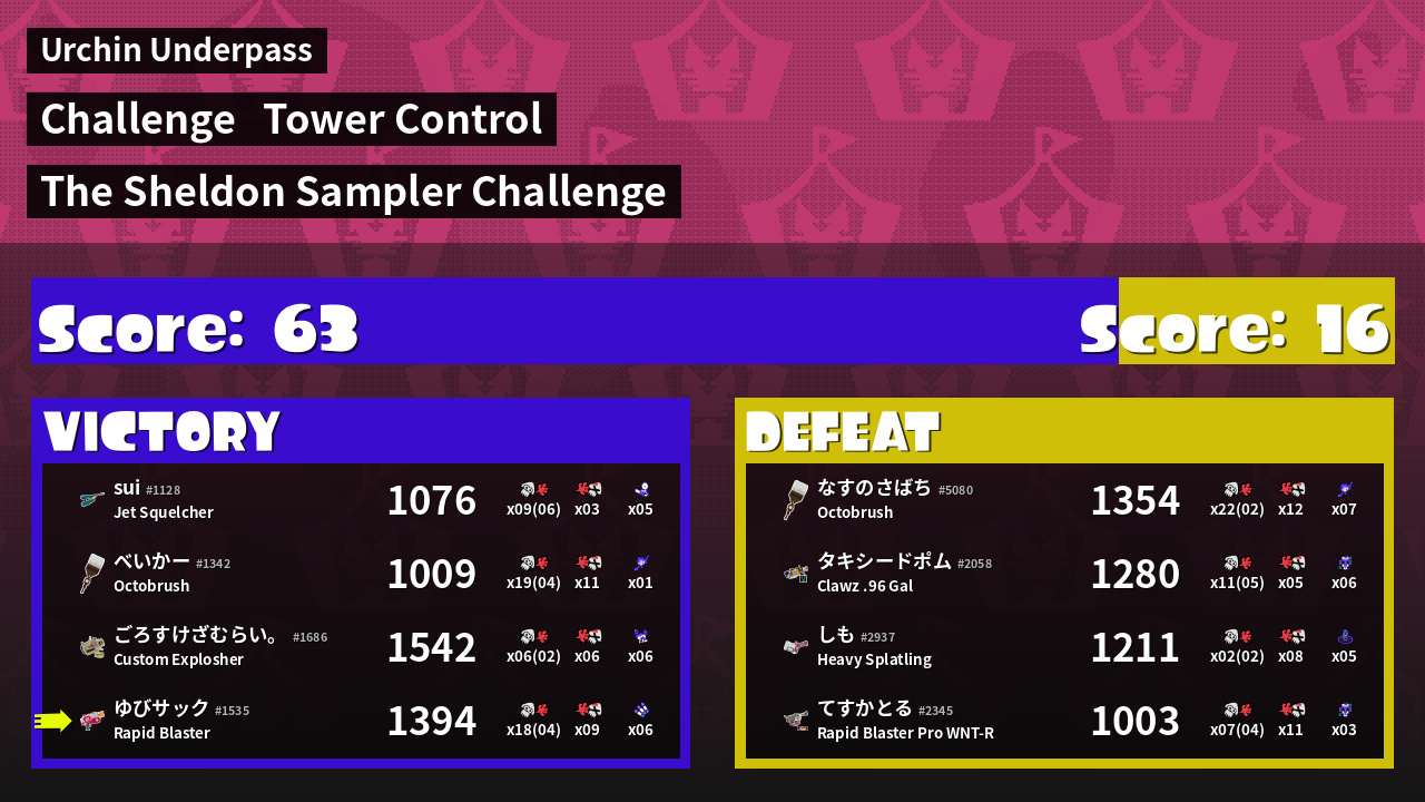 Results of ゆびサック's Battle