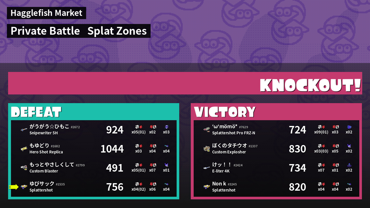 | Mode | Splat Zones - Private Battle |