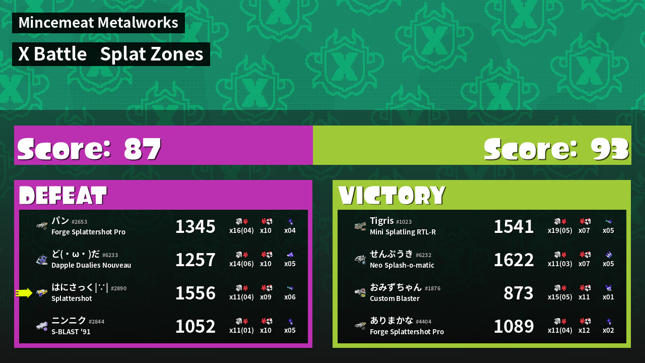 | Mode | Splat Zones - X Battle |