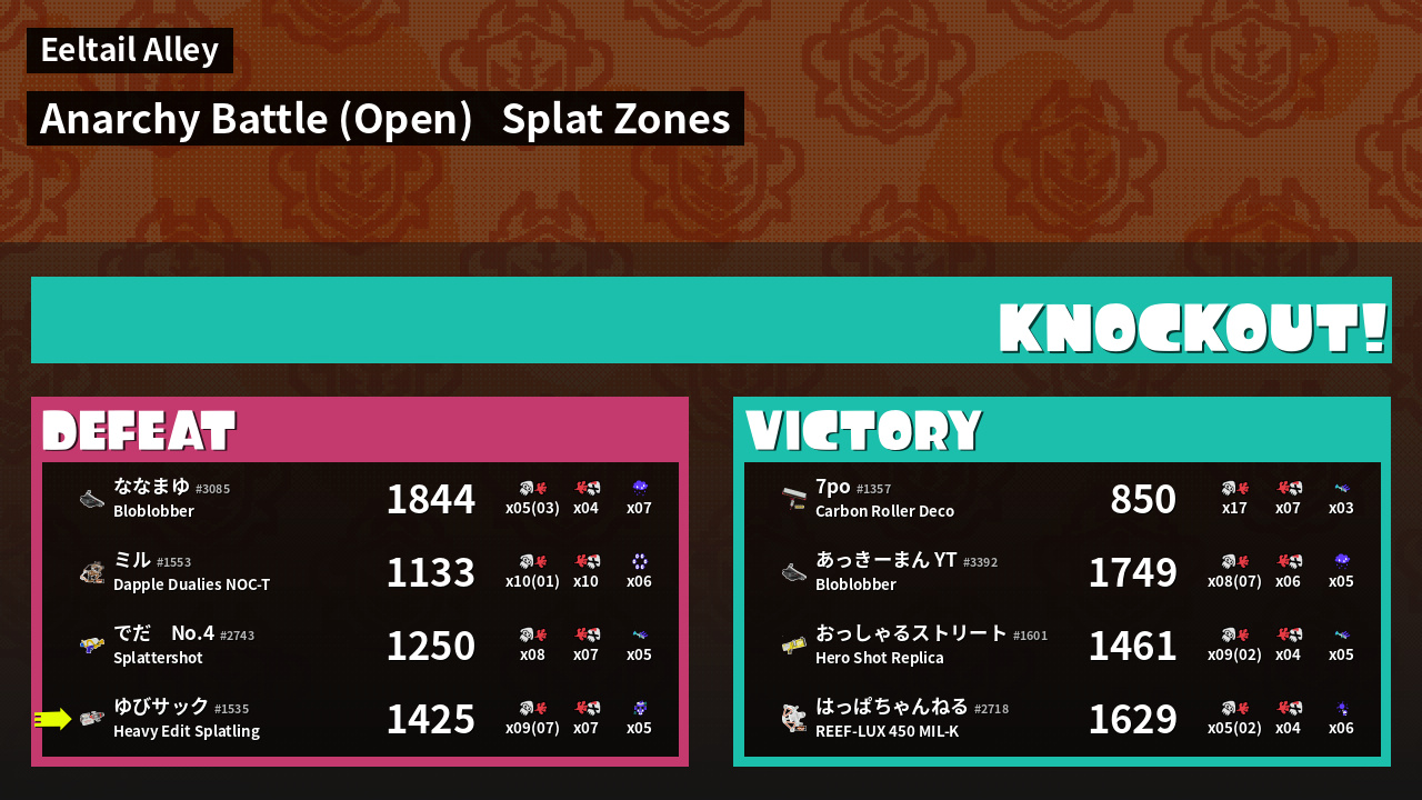 | Mode | Splat Zones - Anarchy Battle (Open) |