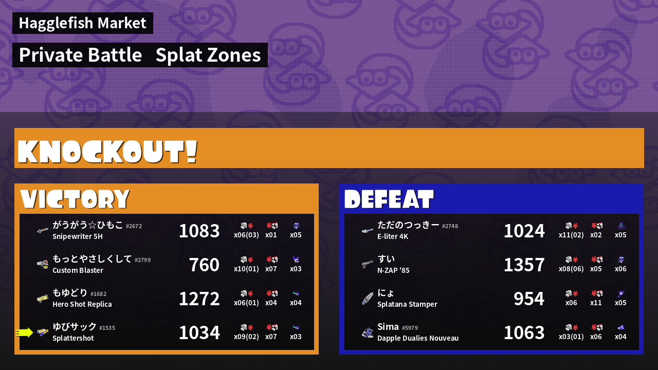 | Medals | #1 Splat Zone Guard #1 Splat Zone Hero First Splat! |