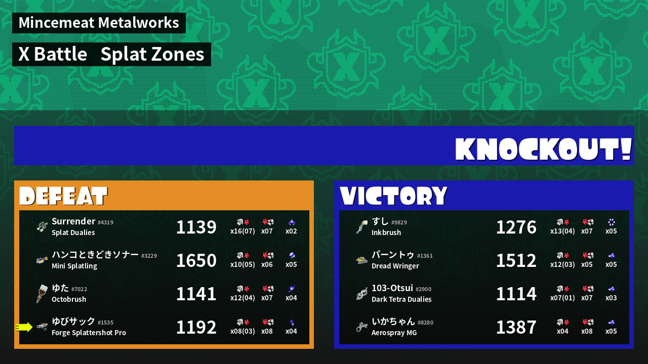 | Weapon | Forge Splattershot Pro ( Suction Bomb / Booyah Bomb) |