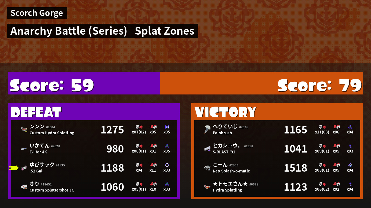 Results of ゆびサック's Battle