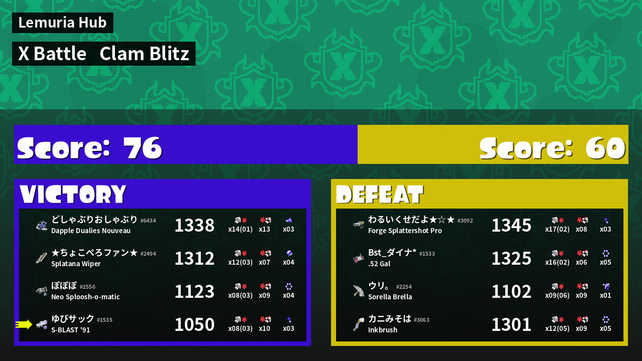| Medals | #1 Splat Assister #1 Booyah Bomb User #2 Score Booster |