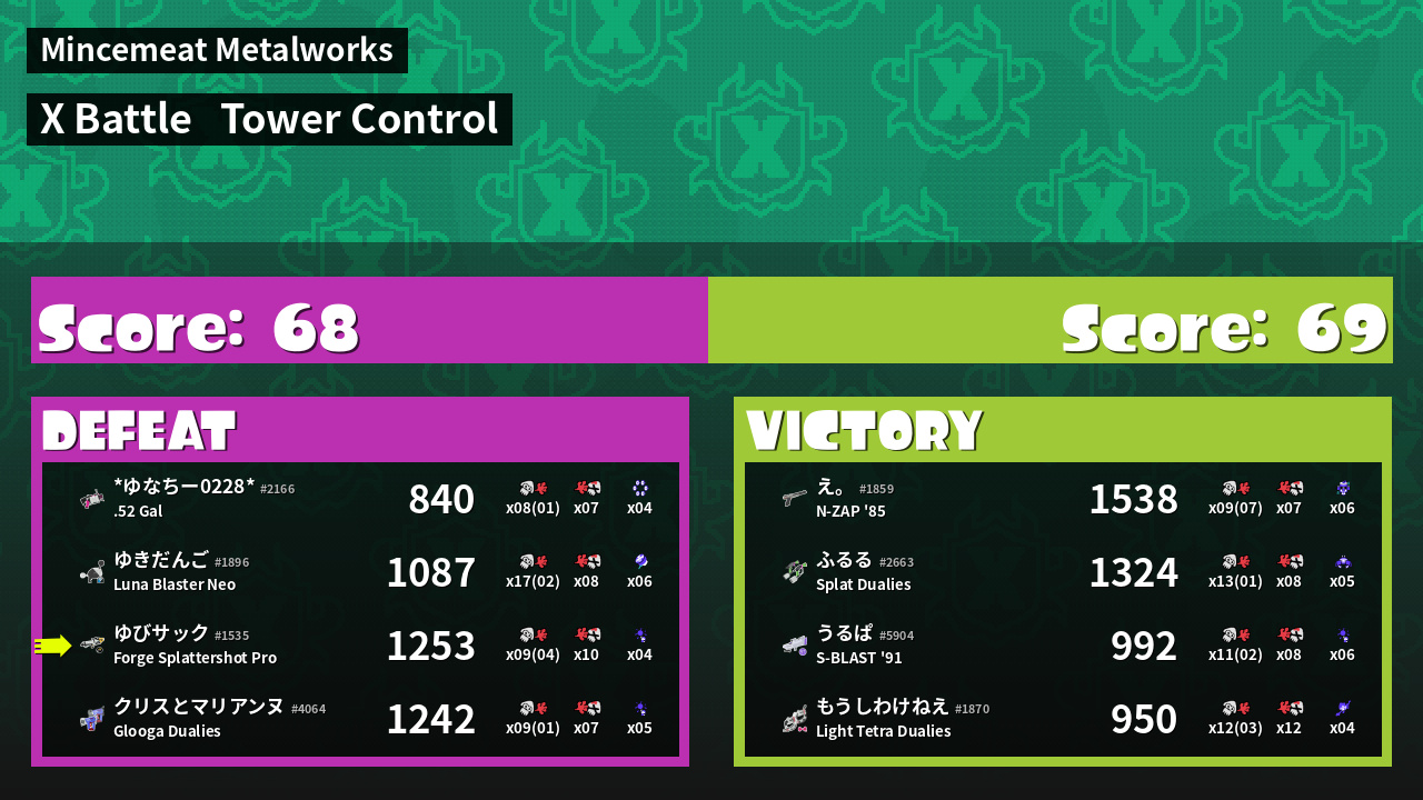 | Medals | #1 Turf Inker #1 Splat Assister #1 Ink Consumer |