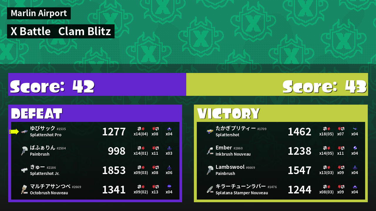 | Mode | Clam Blitz - X Battle |