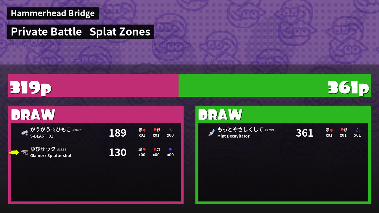 | Mode | Splat Zones - Private Battle |