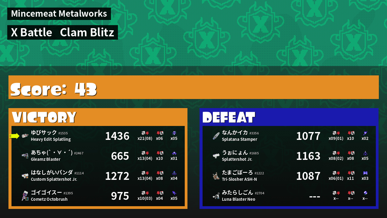 Kills / Deaths | 13 + 8 / 6 > Kill Ratio: 2.17 |