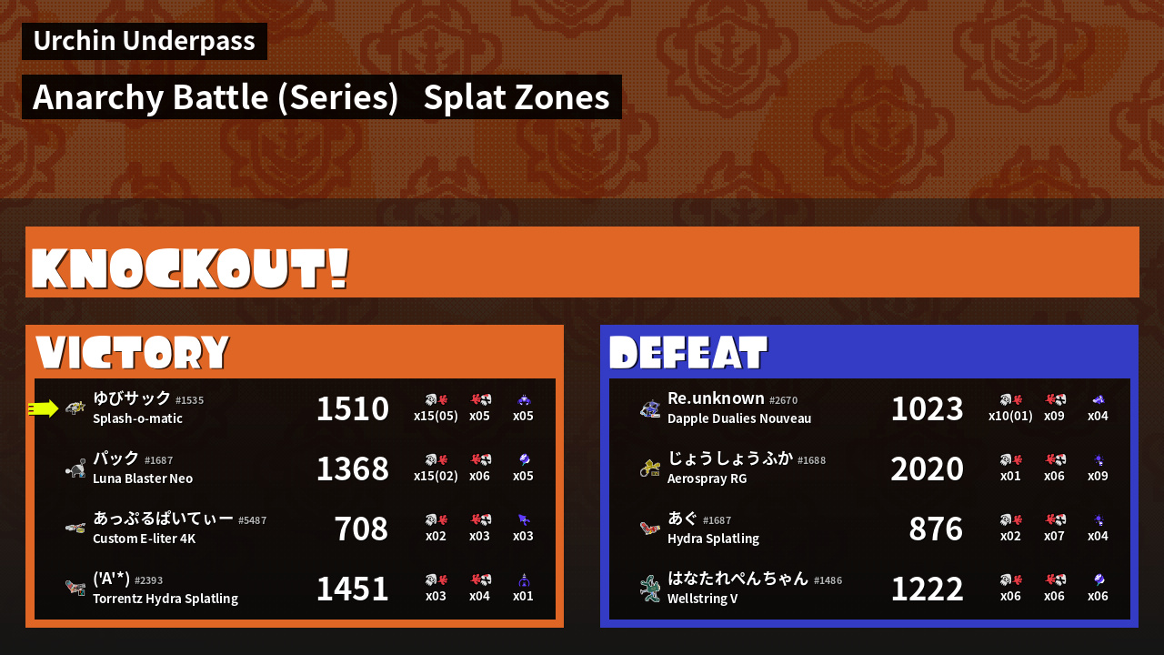 | Mode | Splat Zones - Anarchy Battle (Series) |
