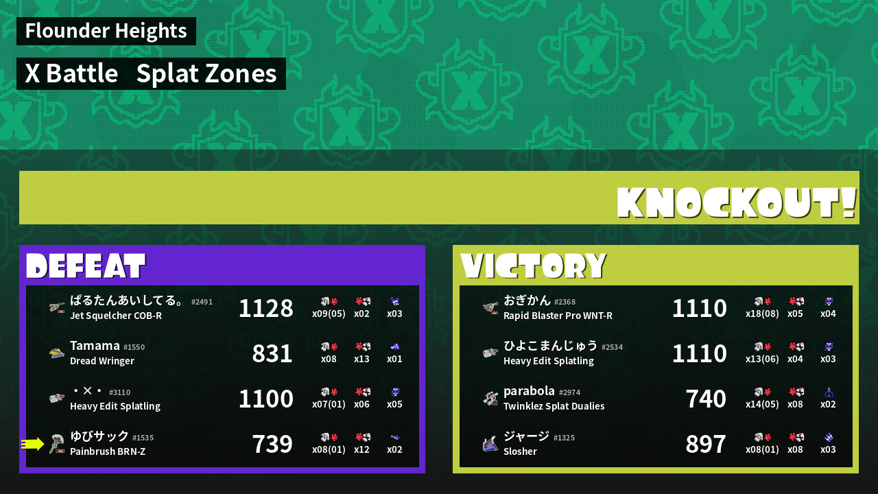 Results of ゆびサック's Battle