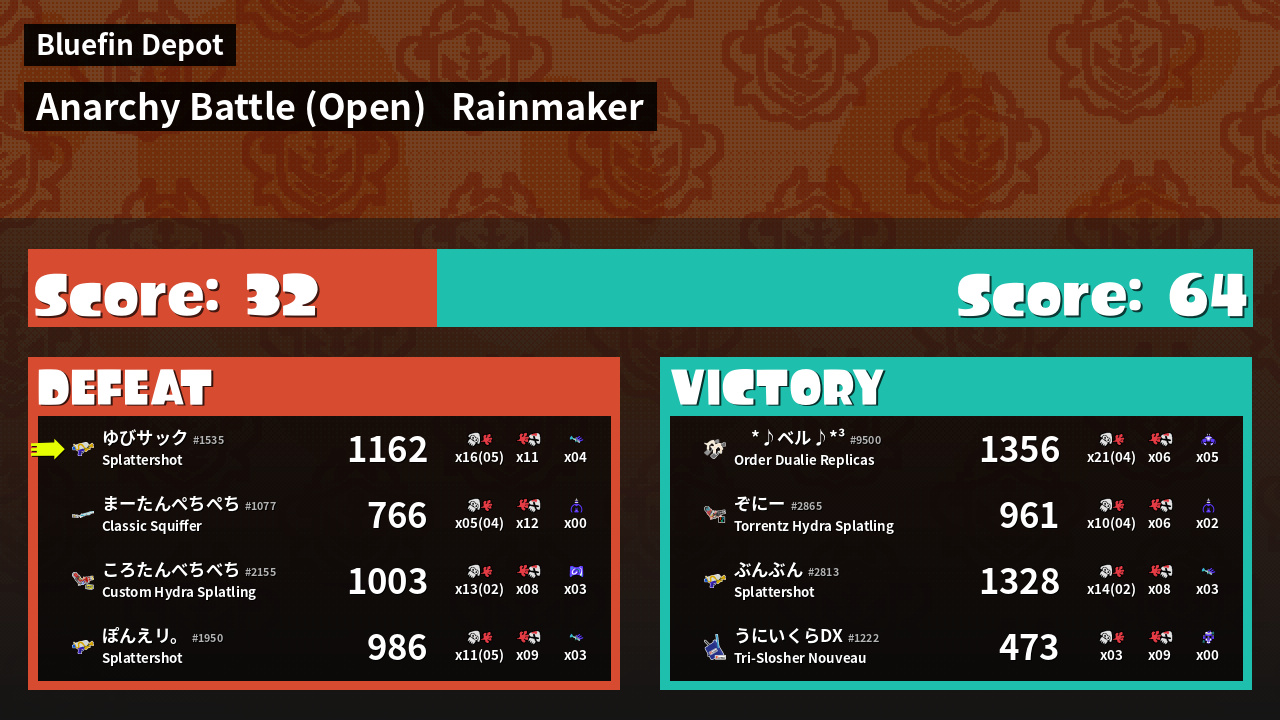 | Mode | Rainmaker - Anarchy Battle (Open) |
