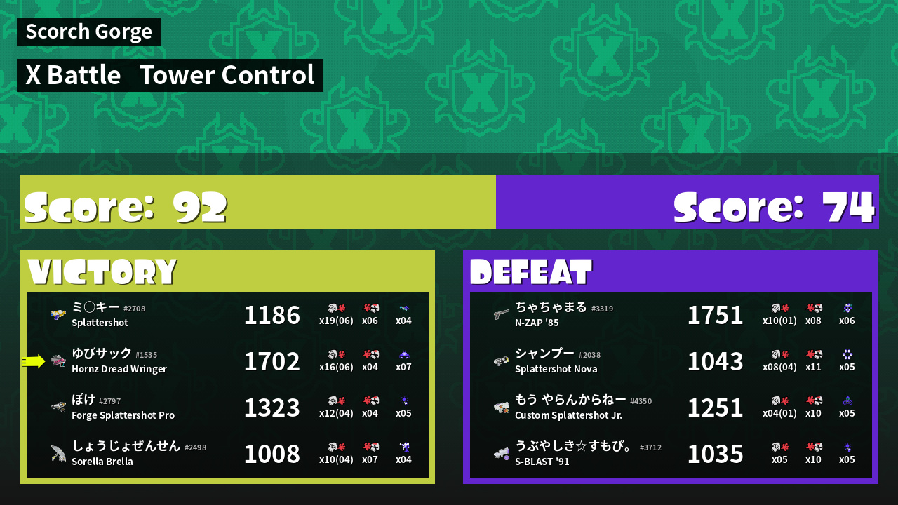 Results of ゆびサック's Battle
