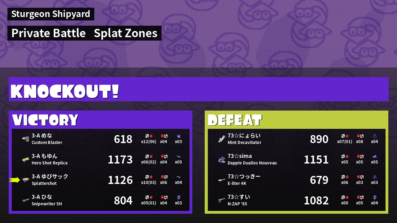 | Mode | Splat Zones - Private Battle |